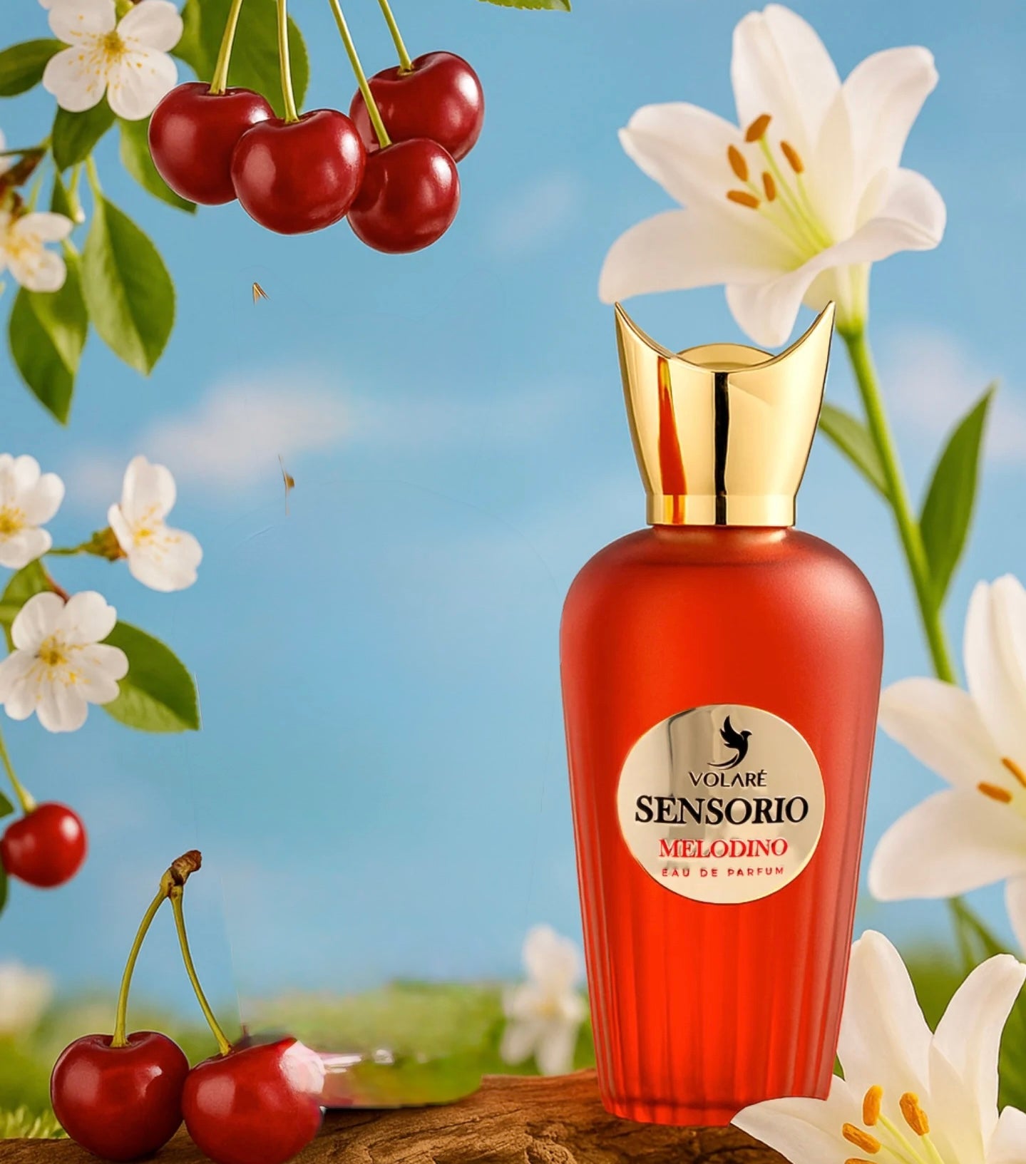 Rote Kirsche, Mandel, Erdbeere, Apfel, Pfirsich, Jasmin Sambac, Rose